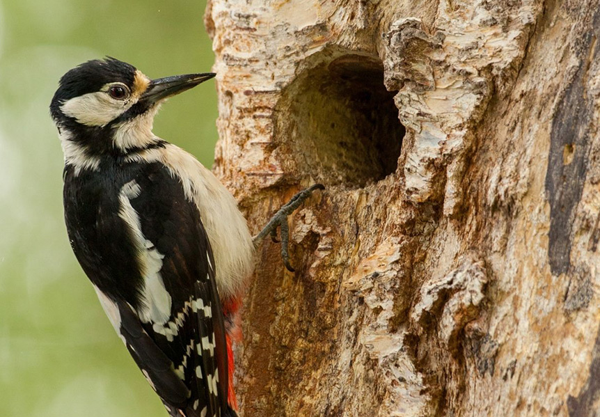 Fot. 1. Dzięcioł duży (Dendrocopos major) przy dziupli. Źródło: Cnva Images.