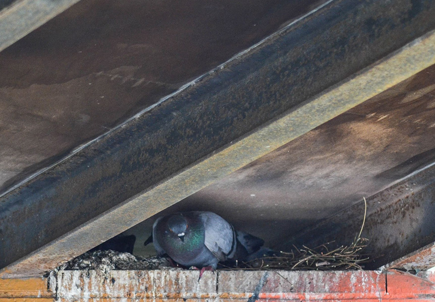 Fot. 7. Minimalistyczne gniazdo gołębia miejskiego (Columba livia forma urbana). Źródło: Cnva Images.