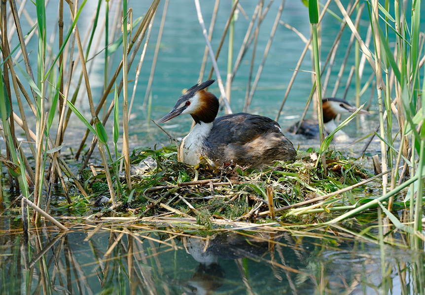 Fot. 6. Pływające gniazdo perkoza dwuczubego (Podiceps cristatus). Źródło: Cnva Images.