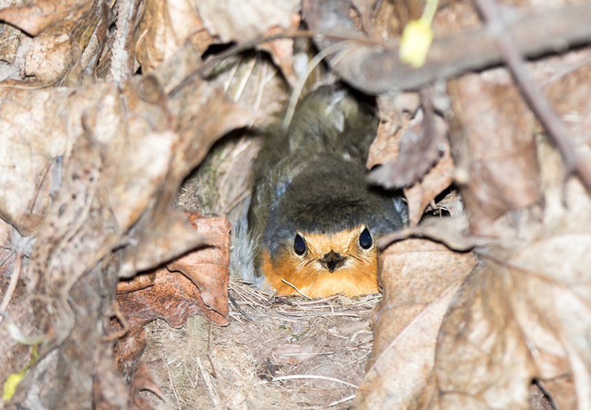 Fot. 4. Półodkryte gniazdo rudzika (Erithacus rubecula). Źródło: Cnva Images.